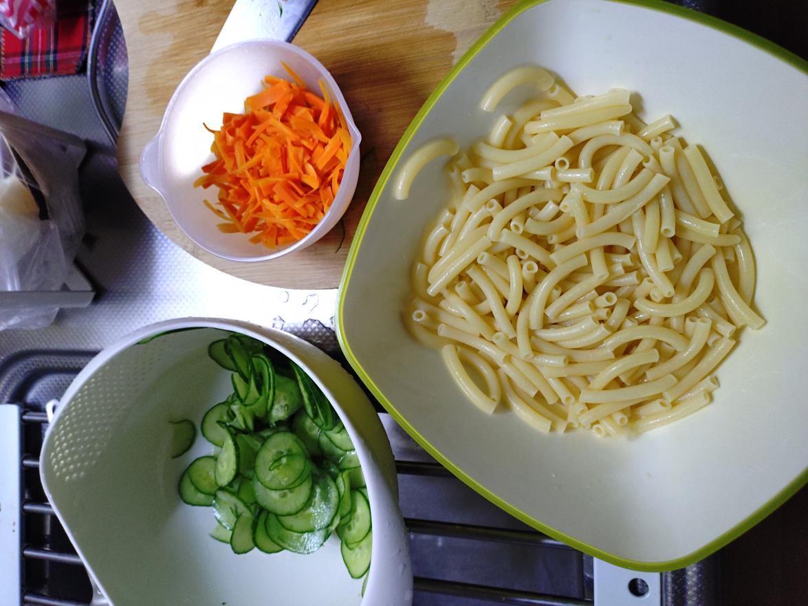 2025.09.28 妻からリクエストがありまして、マカロニサラダを作って欲しいと…。あと、娘が食べたそうにしてるナスのステーキがイイと言うことで作りました!ただ、メインがないので、クラシルか何かで調べたら、キャベツの青のり炒めが出てきたので作りました💡。サラダはキュウリはカット後塩揉みして混ぜたので、塩味の塩梅がよくできました!