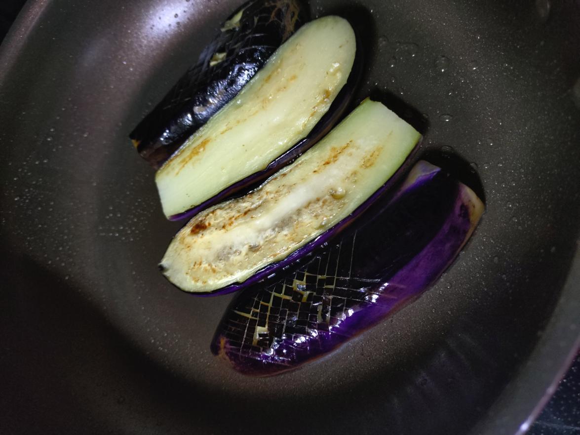 ナスは表面を網目のカットを入れて、見た目良く作りました。キャベツの青のり炒めは、…ポテチののりしお味そのものになったらしく、今日ののりしお、美味しかったと絶賛でした💡